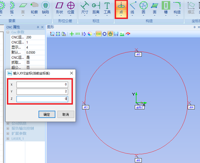 選擇坐標系中的“坐標”,選擇圓1為原 點X、Y、Z。